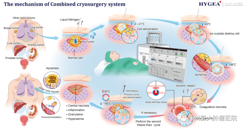 第一,技術(shù)層面:這種集深低溫冷凍和高強(qiáng)度加熱于一體的復(fù)合式腫瘤消融治療技術(shù)方案,結(jié)合了冷凍消融和熱消融的優(yōu)勢(shì)作用,摒棄了單一功能治療設(shè)備的缺陷,殺傷腫瘤更徹底,高溫加熱可大幅減少針道出血,實(shí)現(xiàn)了更好的安全有效性;