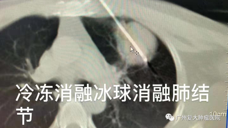 吳先生在接受抗感染治療控制發(fā)燒癥狀、改善右側(cè)氣胸以及胸腔積液的問(wèn)題后,牛立志院長(zhǎng)為吳先生做了左肺結(jié)節(jié)康博刀冷凍消融術(shù),術(shù)程順利。