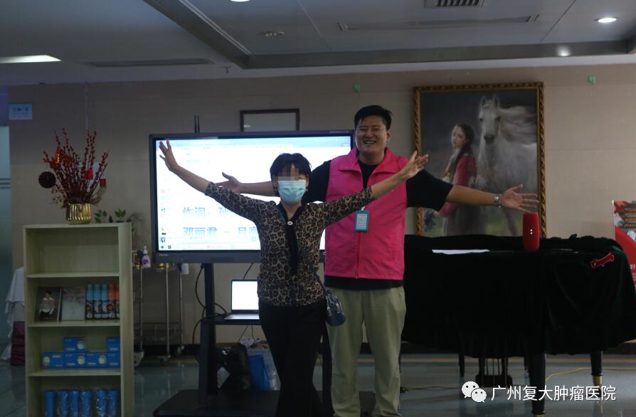而借著這個(gè)健康知識(shí)講座,活動(dòng)現(xiàn)場(chǎng)醫(yī)護(hù)人員和住院患者及家屬同臺(tái)彈唱,氛圍融洽?;颊呙墒迨宓匿撉傺葑?、大家現(xiàn)場(chǎng)歌曲合唱,讓不少阿姨忍不住搖動(dòng)自己的身姿,跳起舞來。大家在一片片歡聲笑語中度過。