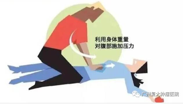 采用仰臥位,搶救者騎跨在病人髖部,按上法推壓沖擊臍上部位,這樣可以抬高膈肌,使氣道瞬間壓力迅速加大,將堵塞的食物沖出氣道。