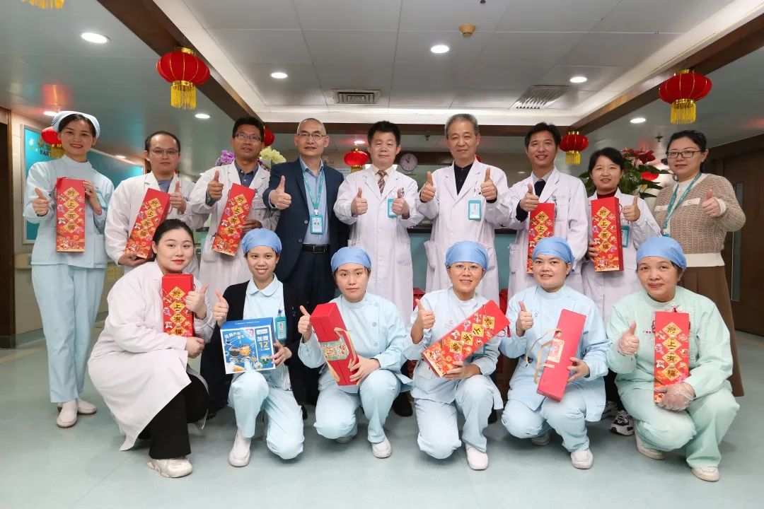 “新年好,提前給大家拜年了,大家辛苦了,祝大家身體健康、工作順利,兔年吉祥!”每到一處,院領(lǐng)導(dǎo)都親切地與各科室在崗人員進行交流,向他們致以新春佳節(jié)的美好祝愿,并對職工的辛勤工作、堅守崗位表示敬意,感謝大家為醫(yī)院建設(shè)發(fā)展所做出的貢獻,希望大家在愛崗敬業(yè)的同時保重身體,一起度過一個平安祥和愉快的新春佳節(jié)。