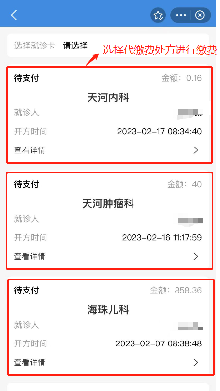 醫(yī)生開完處方后點(diǎn)擊診間繳費(fèi)→選擇就診人→選擇待支付處方→選擇結(jié)算。