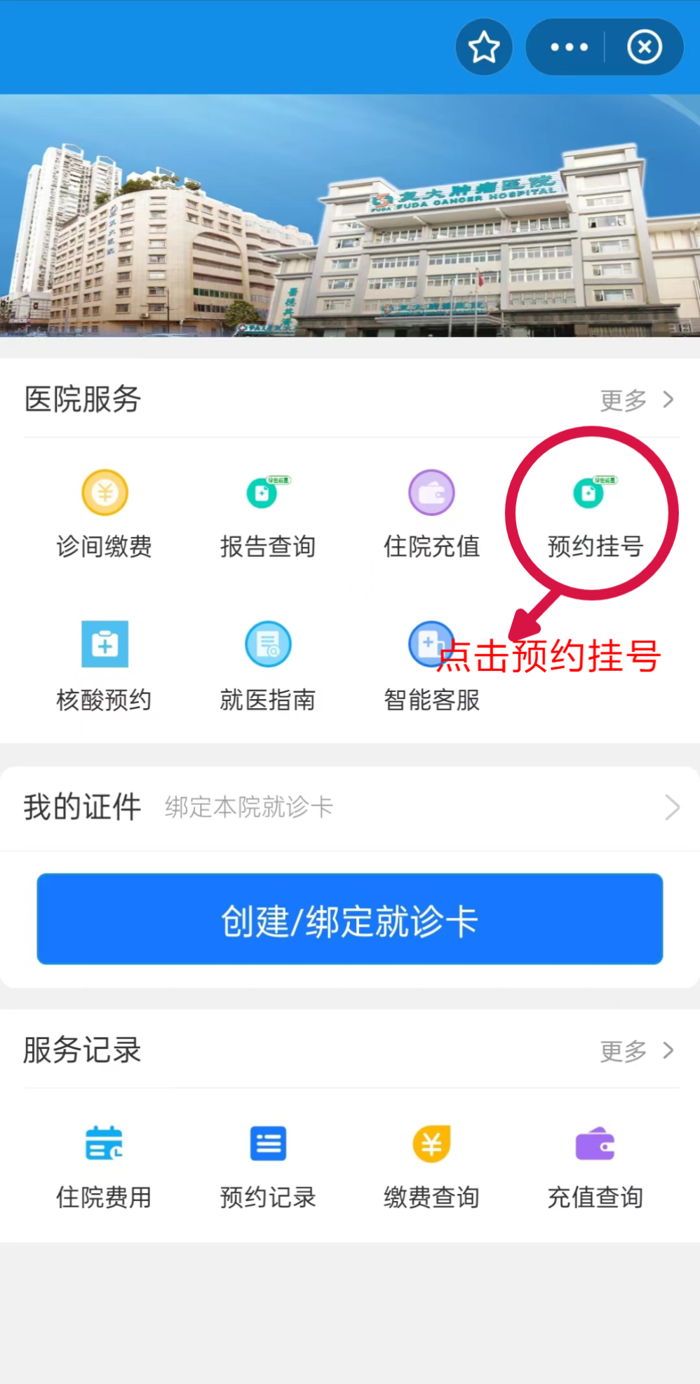 進(jìn)入廣州復(fù)大腫瘤醫(yī)院小程序